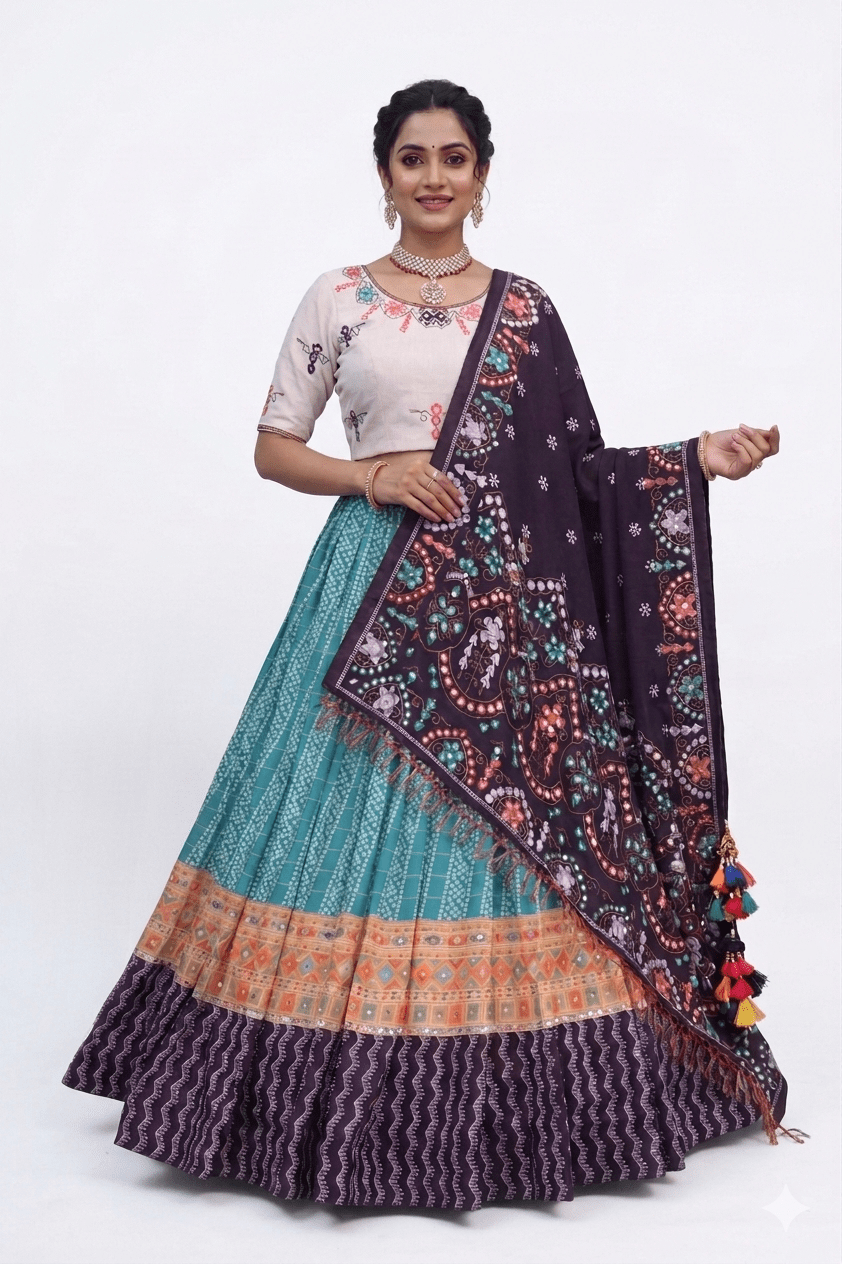Lehenga work : Printed WITH Real Mirror
